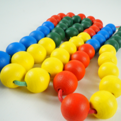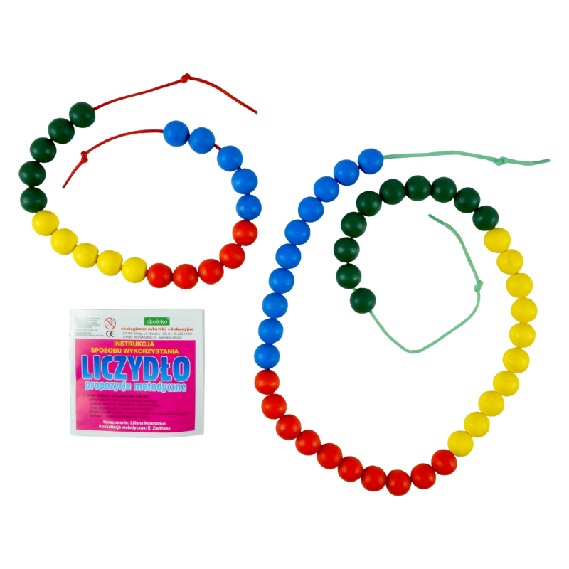 - liczydło z drewnianymi koralikami pogrupowanymi po 10 w czterech kolorach.