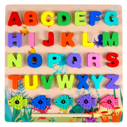 - 26 drewnianych literek alfabetu łacińskiego