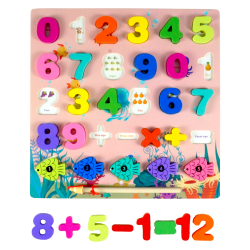 - 20 drewnianych cyferek i 5 symboli działań arytmetycznych