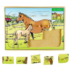 - Ręcznie robiona jakość – każdy element układanki został wykonany z dbałością i pasją, co podnosi wartość estetyczną i odbiór sensoryczny zabawki