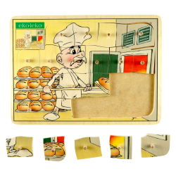 Drewniane puzzle przedstawiające piekarnię.