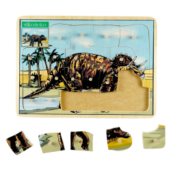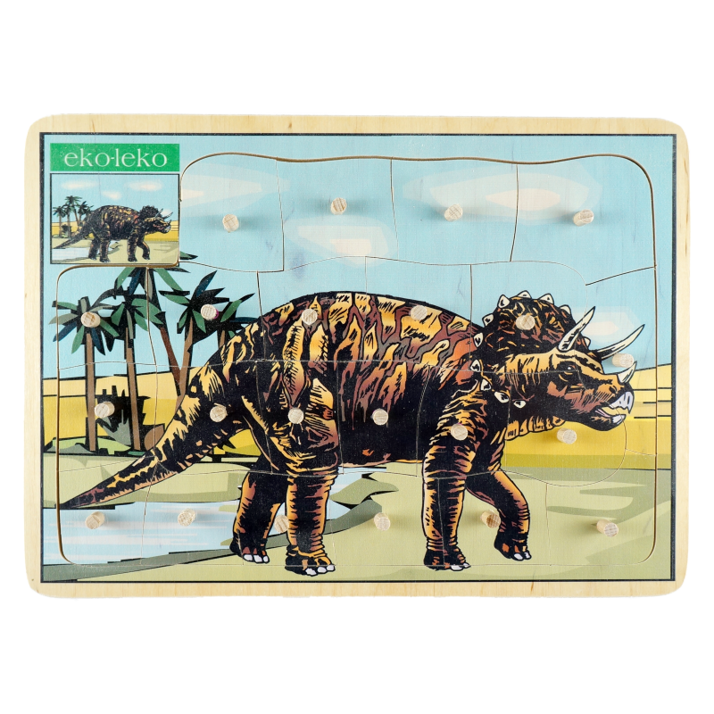 Drewniane puzzle przedstawiające dinozaura - triceratopsa.