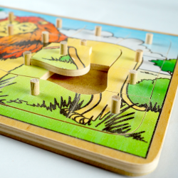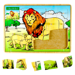 Drewniane puzzle przedstawiające lwy.