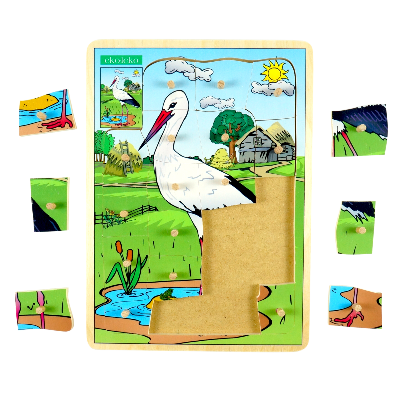 - Ręcznie robiona jakość – każdy element układanki został wykonany z dbałością i pasją, co podnosi wartość estetyczną i odbiór sensoryczny zabawki