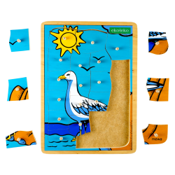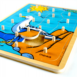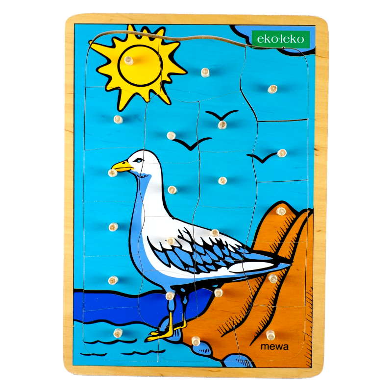 Drewniane puzzle przedstawiające mewę.
