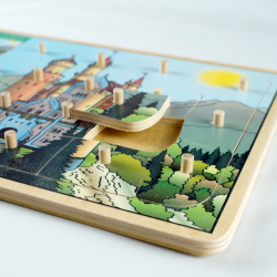 - Ręcznie robiona jakość – każdy element układanki został wykonany z dbałością i pasją, co podnosi wartość estetyczną i odbiór sensoryczny zabawki