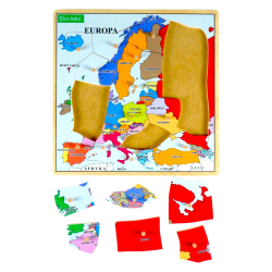 Drewniane puzzle przedstawiające mapę polityczną Europy.